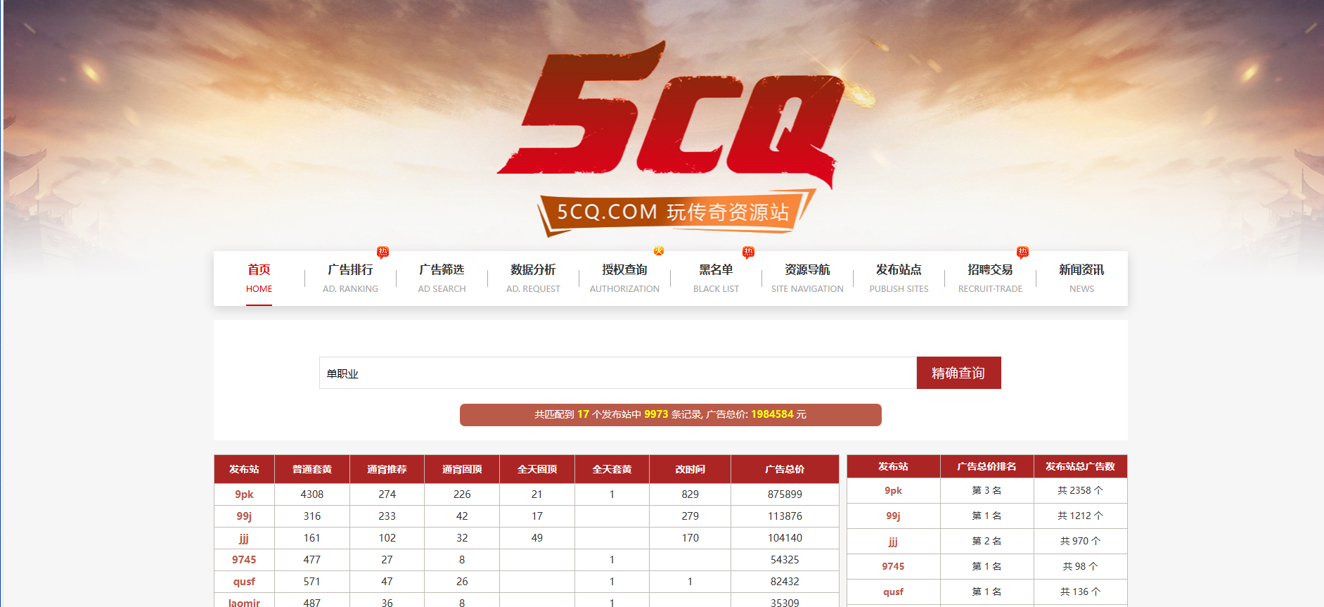 本站 传奇手游提供的 5CQ查询站都来源于网络,不保证外部链接的准确性和完整性,同时,对于该外部链接的指向,不由 传奇手游实际控制,在 2023年9月6日 下午9:36收录时,该网页上的内容,都属于合规合法,后期网页的内容如出现违规,可以直接联系网站管理员进行删除, 传奇手游不承担任何责任。